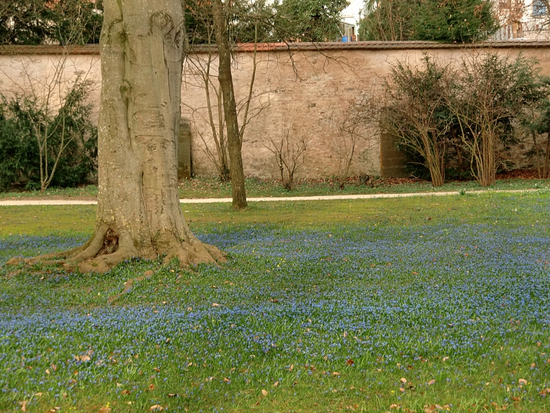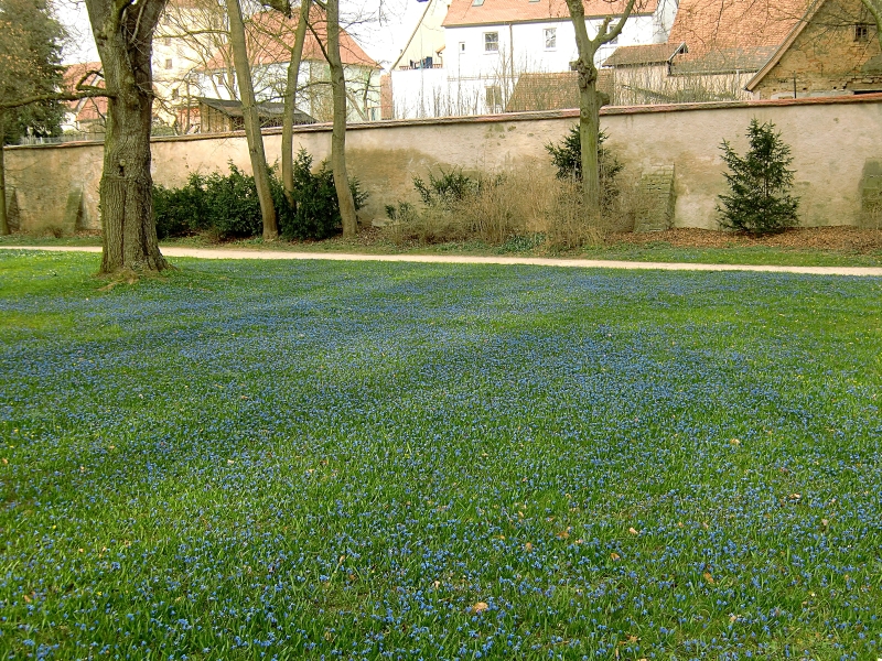 ❖ Viele Blausternchen (Scilla) bilden zur Zeit (Ende März) im frei zugänglichen Schlosspark vom Deutschordensschloss Ellingen (Kreis Weissenburg i.Bay.) einen blauen Teppich unter grossen Bäumen. So viele dieser Blumen an einem Ort findet man selten.