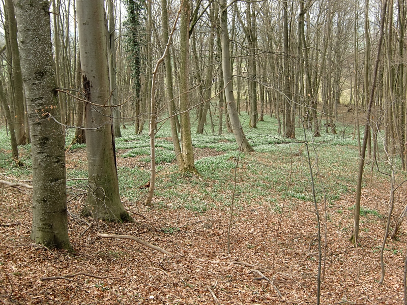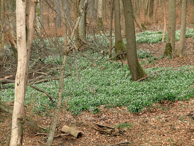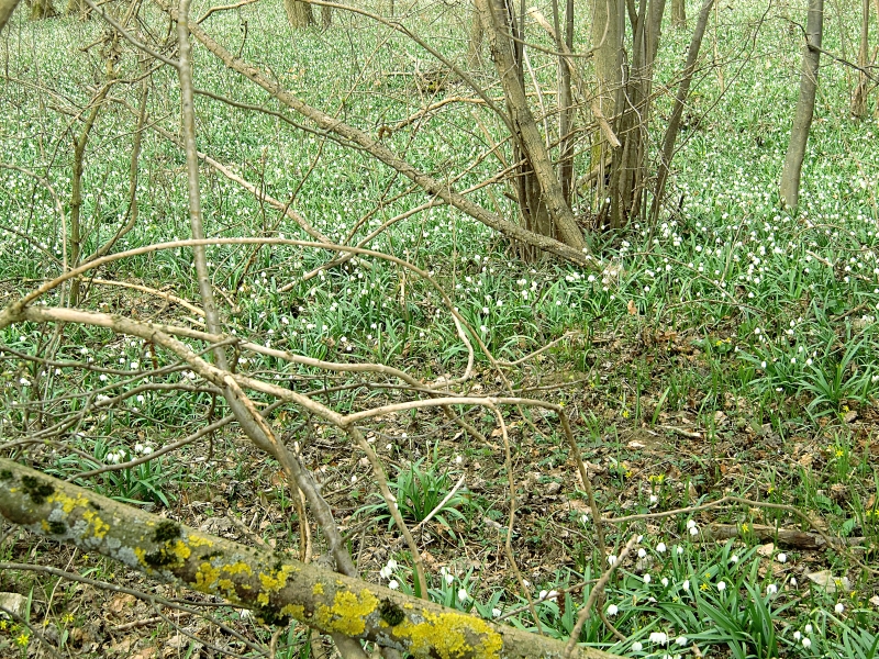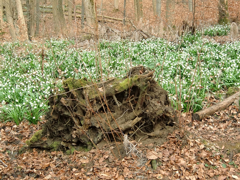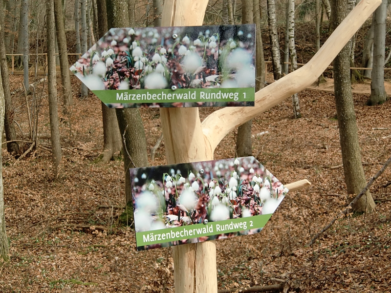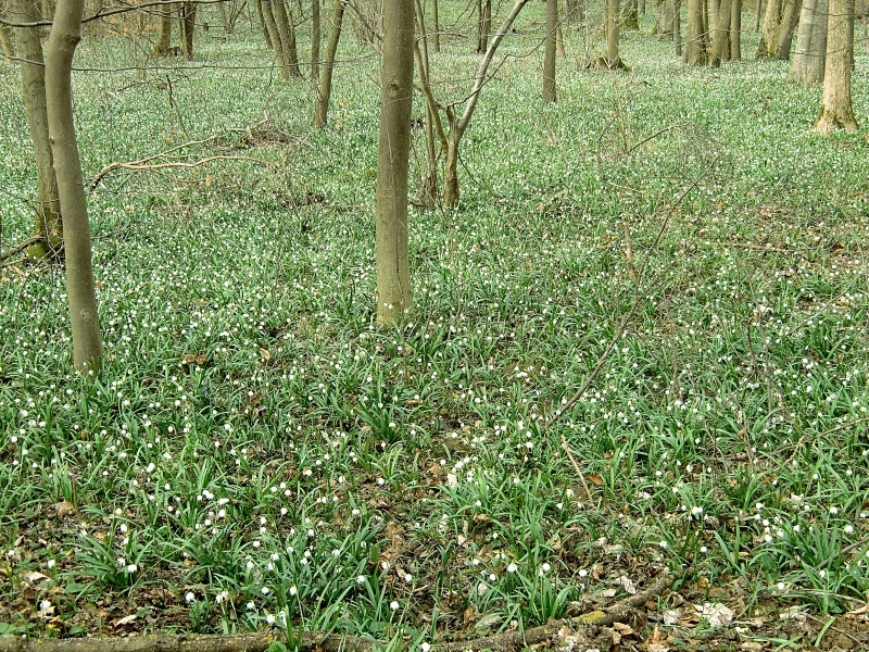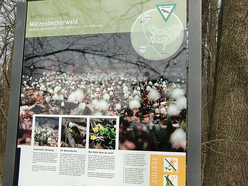 ❖ Im Märzenbecherwald bei Ettstadt/Rohrbach (siehe Bild 1) führen Wegweiser zu 2 schönen Besichtigungsrunden. Dabei kann man die unterschiedlich grossen Blütenteppiche zwischen den Bäumen aus der Nähe bewundern.