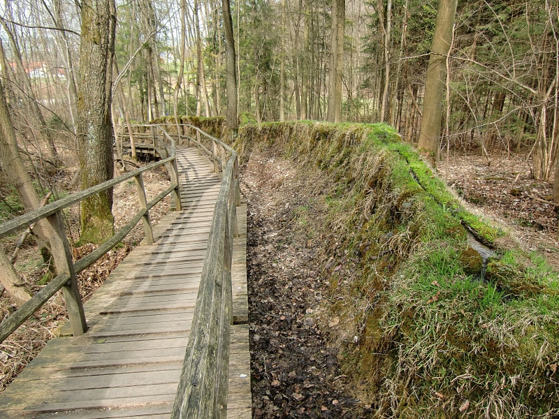 ist etwa 80 m lang und bis 1 m hoch. Die Quelle ist nicht gross und davon fliesst nur ein kleiner Teil des Wassers durch die kurvige Rinne. Der schön angelegte Holzweg
